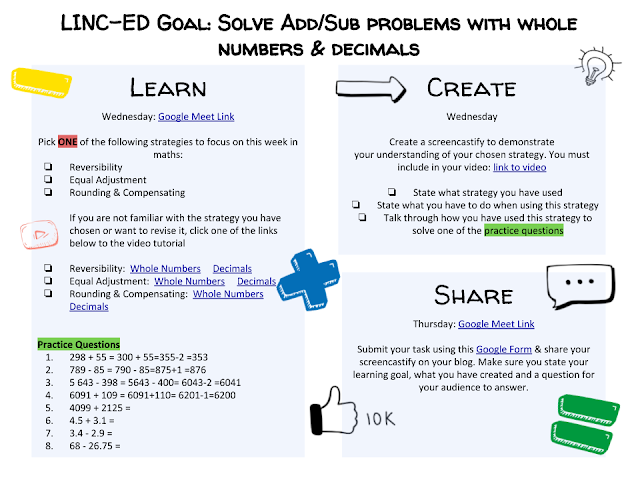 Hello and welcome back to my blog. Today I will talk to you about my maths workshop and the create task that we had to do for it. The first thing we had to do was chose the strategy I chose reversibility then we had to answer some of the practice questions and then make a video explaining how we did it. Have you ever done reversibility?
